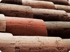Las tejas curvas son elementos de cobertura de forma semitroncocónica, diseñadas para provocar la escorrentía del agua, recogerla y conducirla pendiente abajo. La ausencia de sistemas de encaje entre ellas y con el soporte, posibilita el obtener valores diferentes de solape entre las piezas.