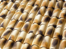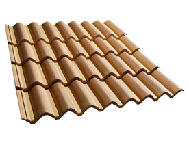 Las tejas curvas son elementos de perfil bastante plano presenta una o mas, generalmente dos acanaladuras, que facilitan la escorrentía. Esta inspirada para lugares donde las lluvias y las nieves son mas abundantes.